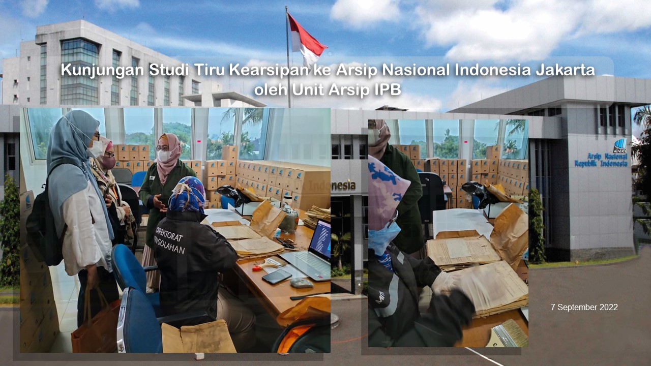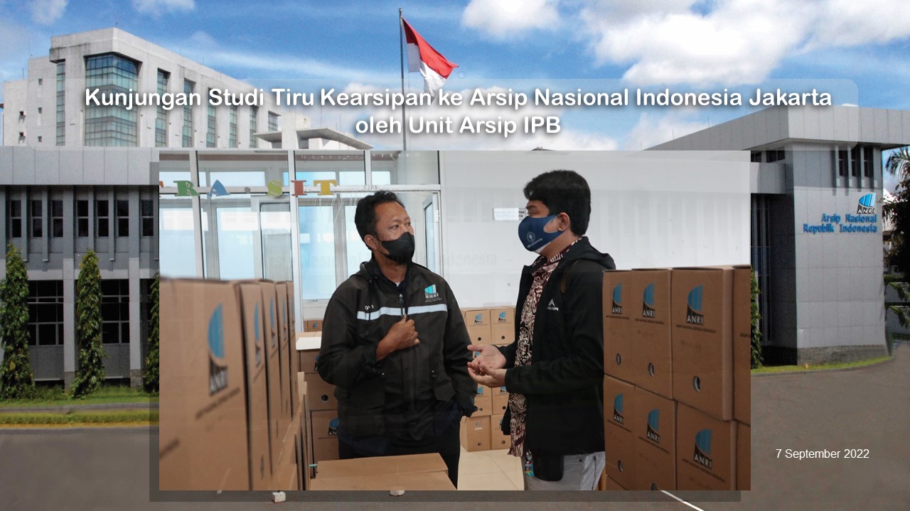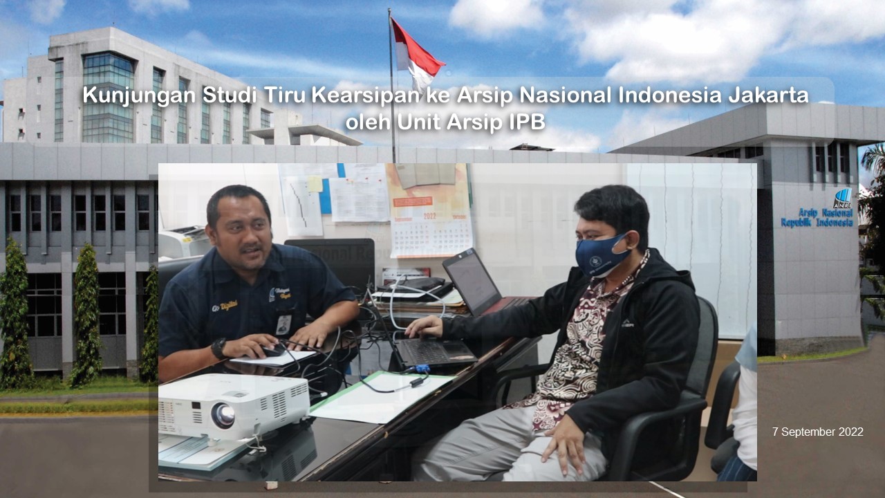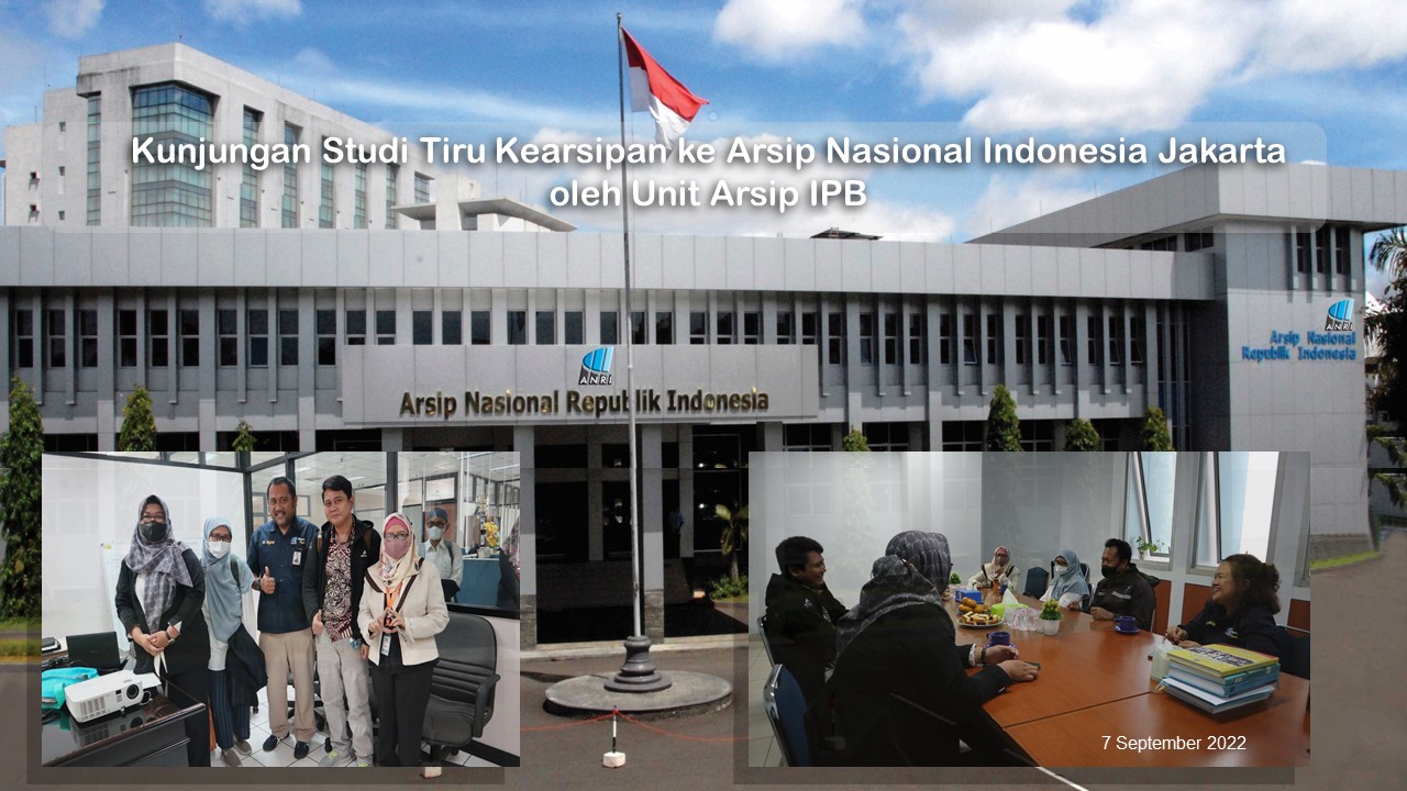 Dalam rangka kunjungan Studi Tiru Kearsipan, maka pada tanggal 7 September 2022 Unit Arsip IPB melalui perwakilannya melaksanakan kunjungan ke Arsip Nasional Indonesia Jakarta. Hal ini selain bertujuan untuk lebih menambah wawasan pengetahuan mengenai kearsipan dalam berbagai bentuk, baik digital maupun konvensional, sekaligus dalam rangka program pembinaan SDM Kearsipan di lingkungan IPB. Beberapa informasi yang disampaikan pada kesempatan kunjungan ini diantaranya adalah pengetahuan mengenai Aplikasi Sistem Informasi Kearsipan Dinamis Terintegrasi (SRIKANDI). Sesuai dengan keputusan Menteri Pendayagunaan Aparatur Negara dan Reformasi Birokrasi Nomor 679 Tahun 2020 tentang Aplikasi Umum Bidang Kearsipan Dinamis bahwasanya Sistem Informasi Kearsipan Dinamis Terintegrasi (SRIKANDI) ditetapkan sebagai Aplikasi Umum Bidang Kearsipan Dinamis, pelaksana ketentuan pasal 36 dan pasal 43 Peraturan Presiden Nomor 95 tahun 2018 tentang